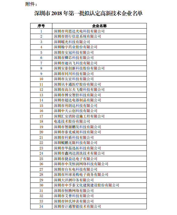各有關(guān)單位: 根據(jù)《關(guān)于深圳市2018年第二批高新技術(shù)企業(yè)備案的復(fù)函》(國科火字〔2019〕62號)、《關(guān)于深圳市2018年第三批高新技術(shù)企業(yè)備案的復(fù)函》(國科火字〔2019…